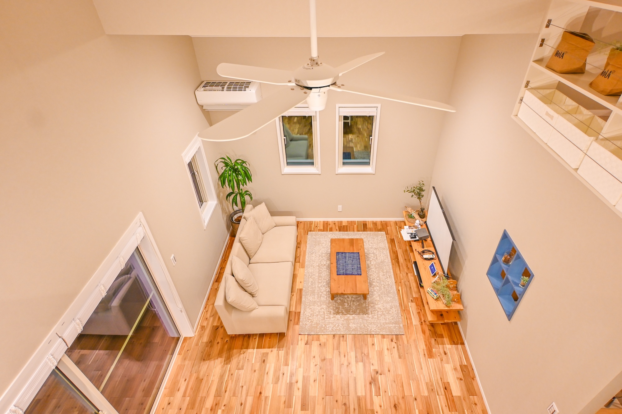 カバードポーチや勾配天井を備えた開放的なリビング、1階と2階をつなぐギャラリースペースなど、デザインと暮らしやすさを両立した住宅を実際にご覧いただけます。家事動線に配慮した「まるごとホームランドリー」や、災害時も安心の太陽光発電・貯水設備を備えたレジリエンス設計も魅力。子育て世代はもちろん、セカンドライフを愉しみたい方にもぴったりな住まいです。